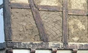 Auf dieses Geflecht wird wenn es gut erhalten ist, der Lehmputz per Hand aufgetragen: